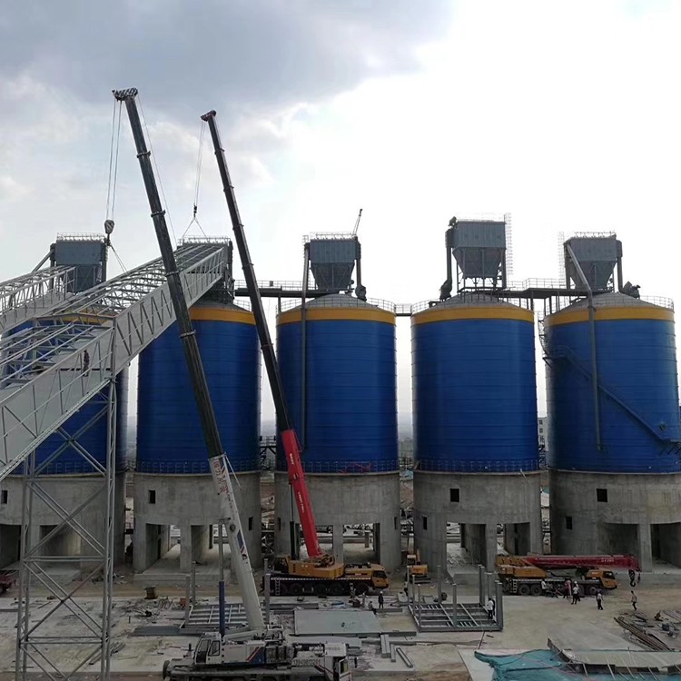 一、结构特点与储存性能:丰满骨料钢板仓通常采用高强度钢板材料制造,具有优良的抗压、抗变形能力。其独特的仓体结构设计,能够有效分散物料对仓壁的压力,减少应力集中,从而保证仓体在长时间储存过程中的稳定性。此外,钢板仓的模块化设计使得其能够根据实际需求进行快速组装和扩展,提高了储存效率。